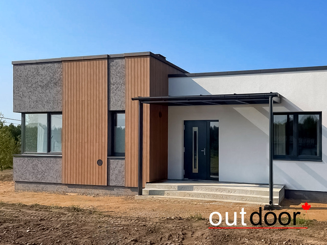 Выполнить облицовку фасада дома при помощи универсальной доски из ДПК.