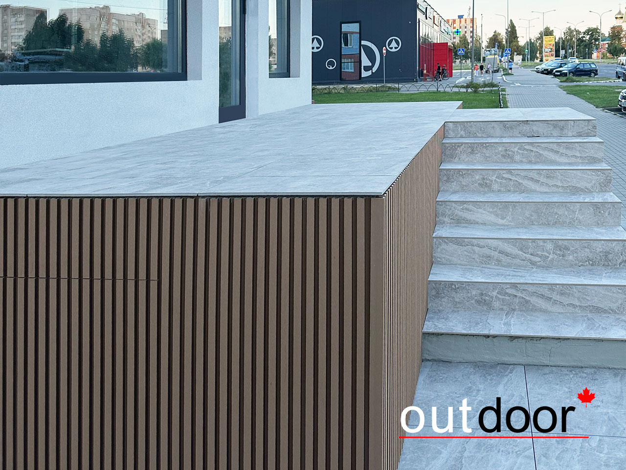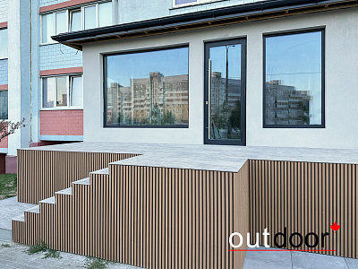 Выполнить облицовку фасадной части террасы при помощи универсальных 3D-панелей из ДПК.