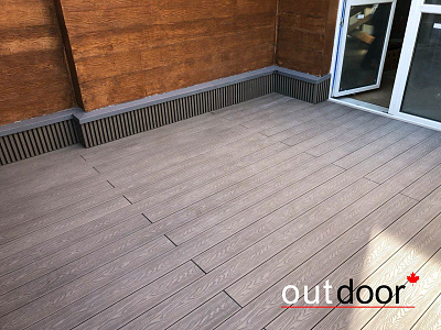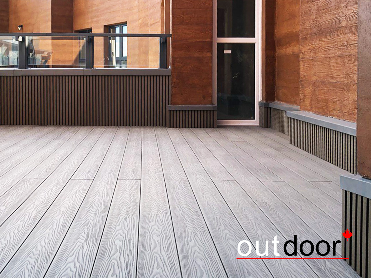 Заменить старое покрытие из плитки на террасную доску из ДПК, а также выполнить частичную облицовку фасада универсальными 3D-панелями из ДПК.