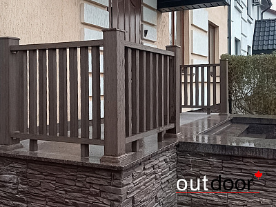 Построить ограждения из ДПК и выполнить облицовку фасадной части террасы при помощи доски из ДПК.