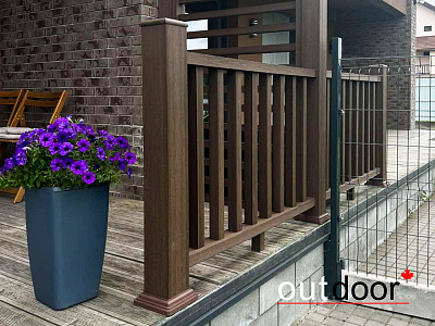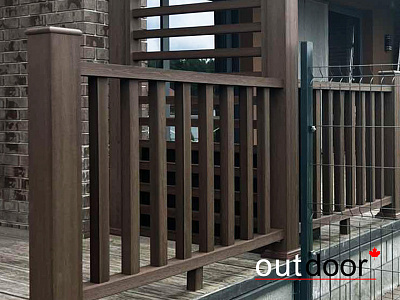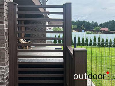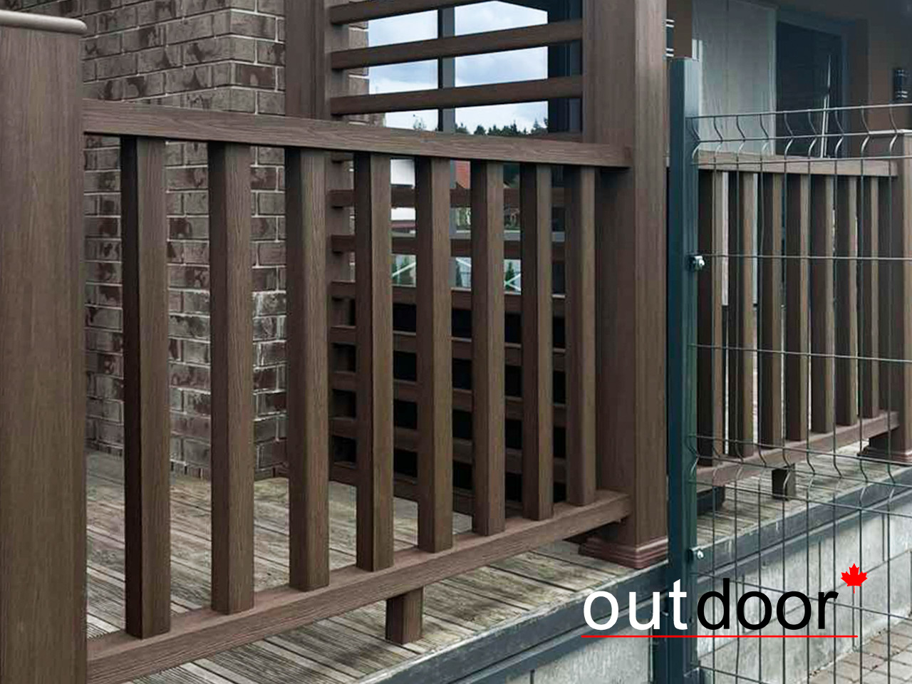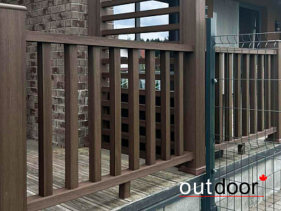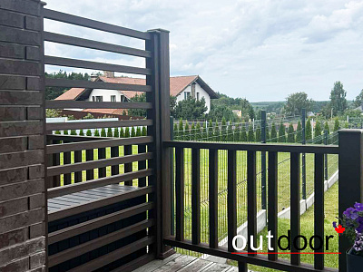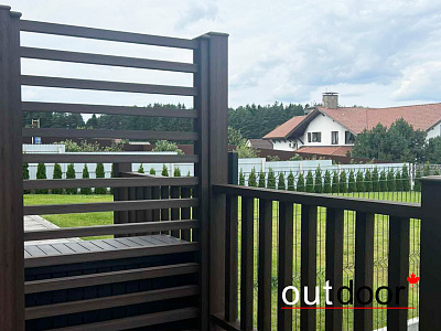 Построить ограждения из ДПК с вертикальным и горизонтальным заполнением пролетов.
