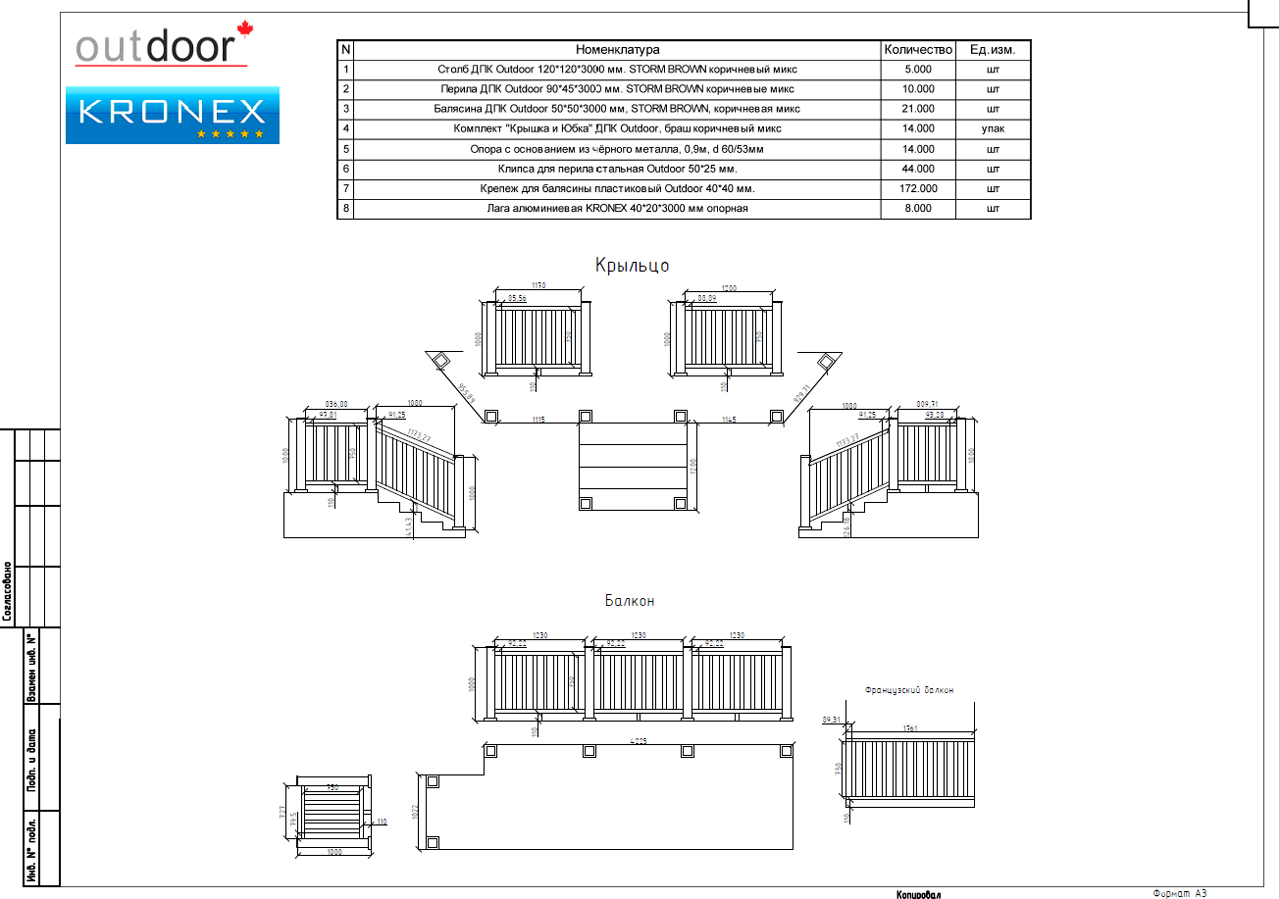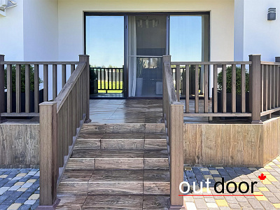 Построить ограждения из ДПК на первом и втором этажах дома.