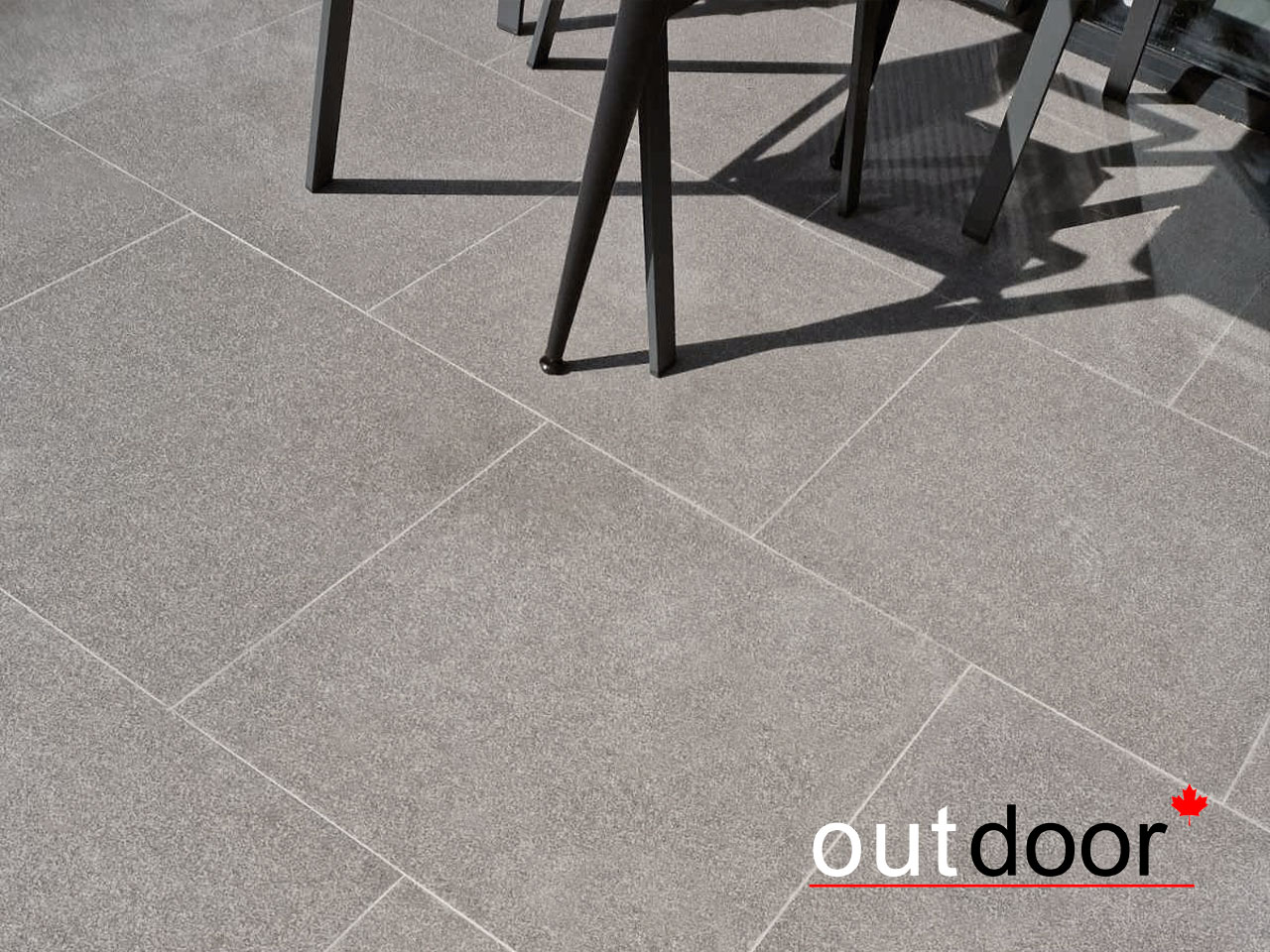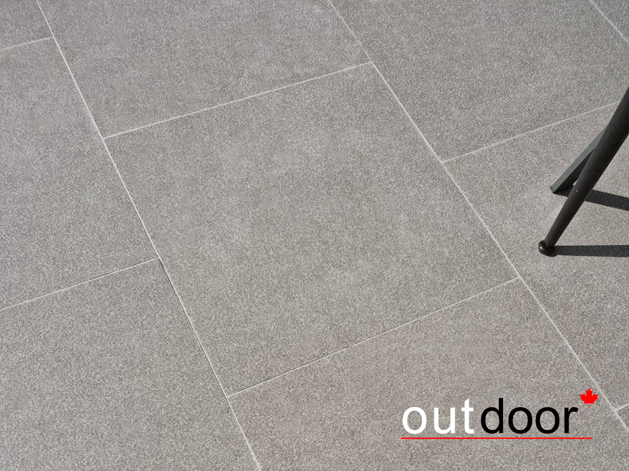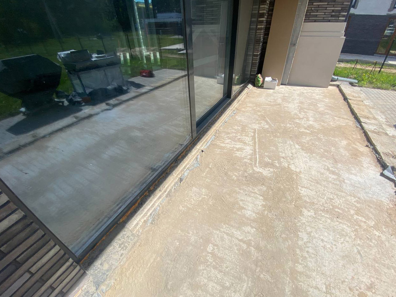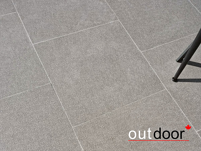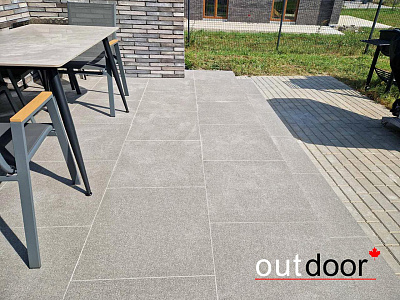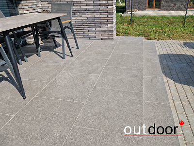 Обустроить настил из утолщенного керамогранита на бетонное основание.