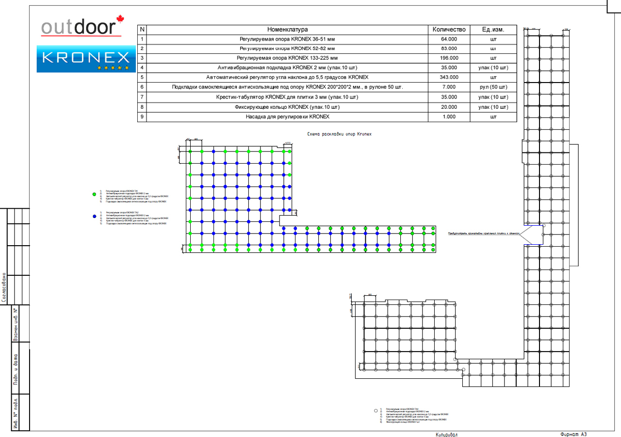 Построить надежную и долговечную подсистему регулируемых опор KRONEX для напольного покрытия из плитки.