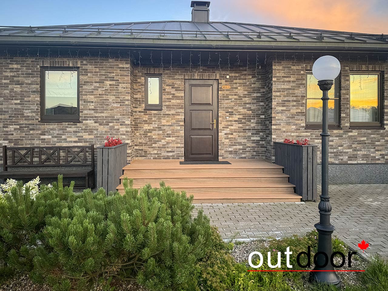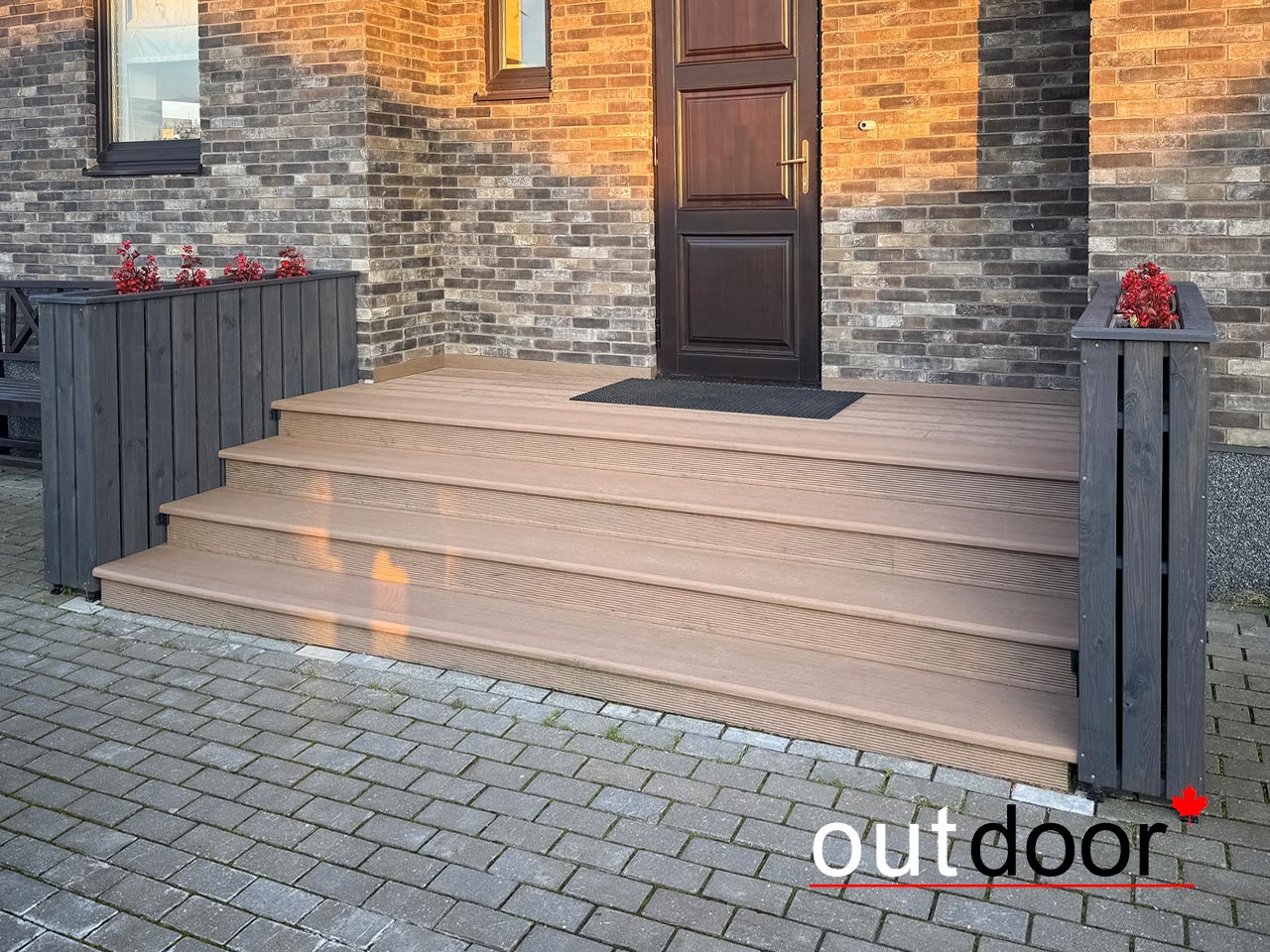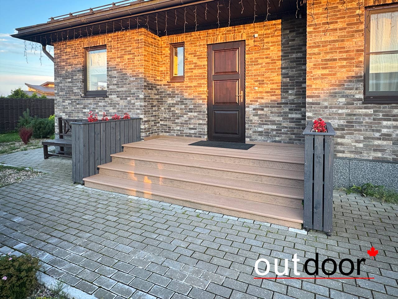 Обустроить террасный настил и ступени из древесно-полимерного композита.