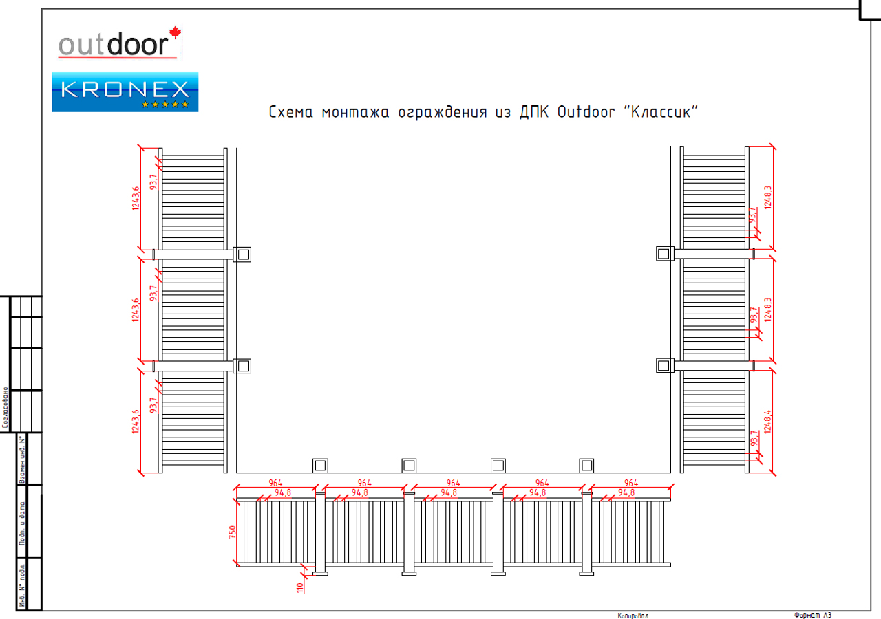 Ограждение из ДПК Outdoor "Классик" 1000*1000 мм. 3D STORM BROWN