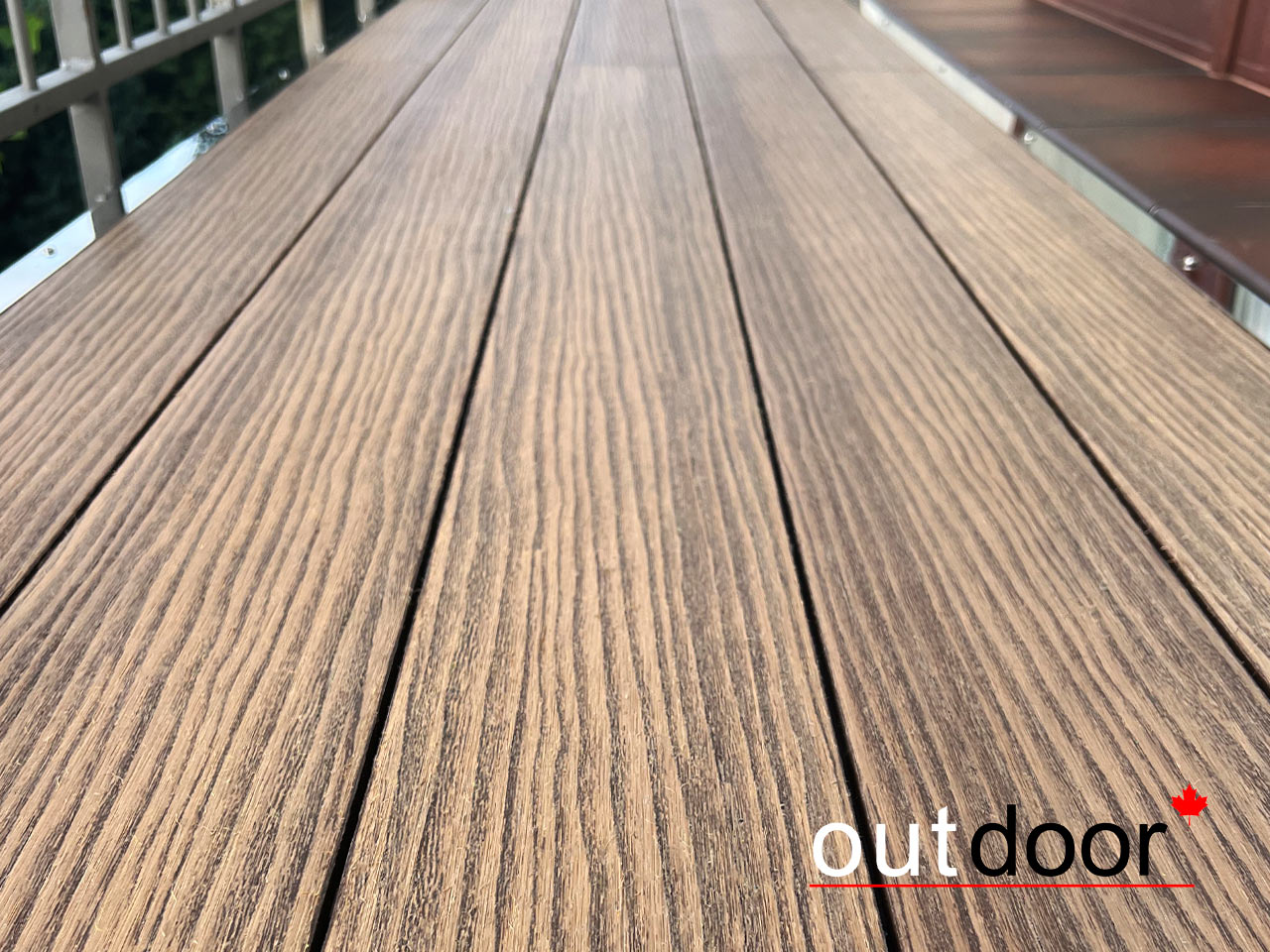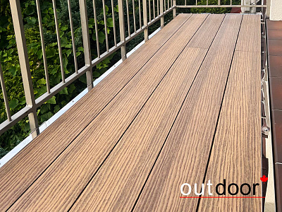Обустроить настил балкона из террасной доски ДПК Dual Co-extrusion.