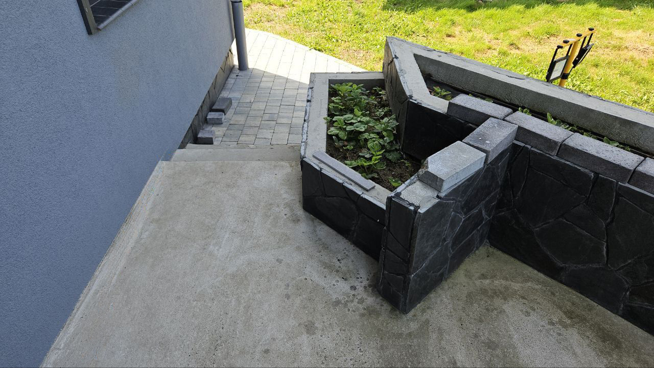 "Обустроить входную группу и крыльцо жилого дома, реализовав максимально визуализацию дизайн-проекта из долговечных материалов ДПК Outdoor. Интегрировать корректные технические решения при реализации идей заказчика."