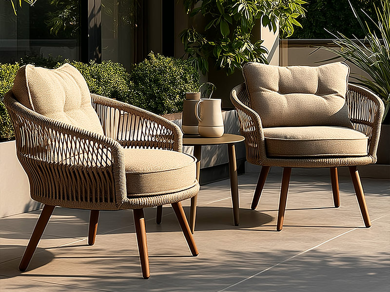 Плетеная мебель из роупа обладает легкостью и воздушностью, при этом очень прочная и долговечная. Вписывается в различные стили и направления, наполняя уютом открытые пространства.