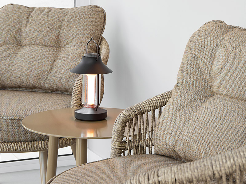 Комплект на две персоны, состоящий из кресел и столика, занимает мало места и может легко перемещаться, что позволяет быстро менять обстановку и создавать новые зоны отдыха в саду.