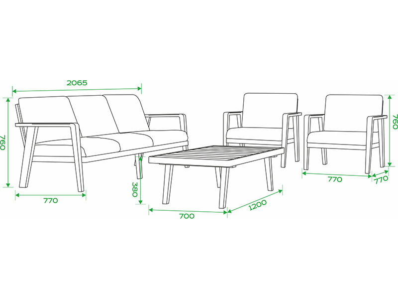 - Допустимая нагрузка на одно место, кг: 80 (диван), 120 (кресло)