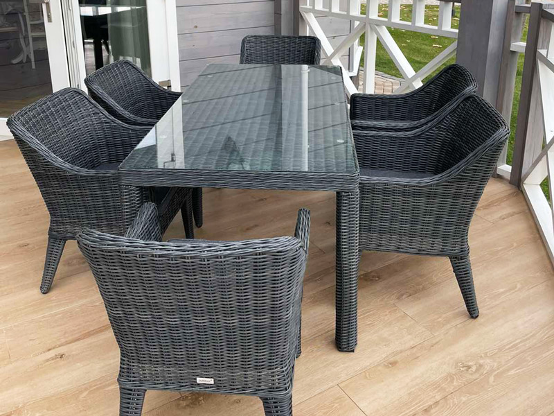 Комплект мебели из ротанга OUTDOOR Марокко (стол, 6 стульев), узкое плетение, графит