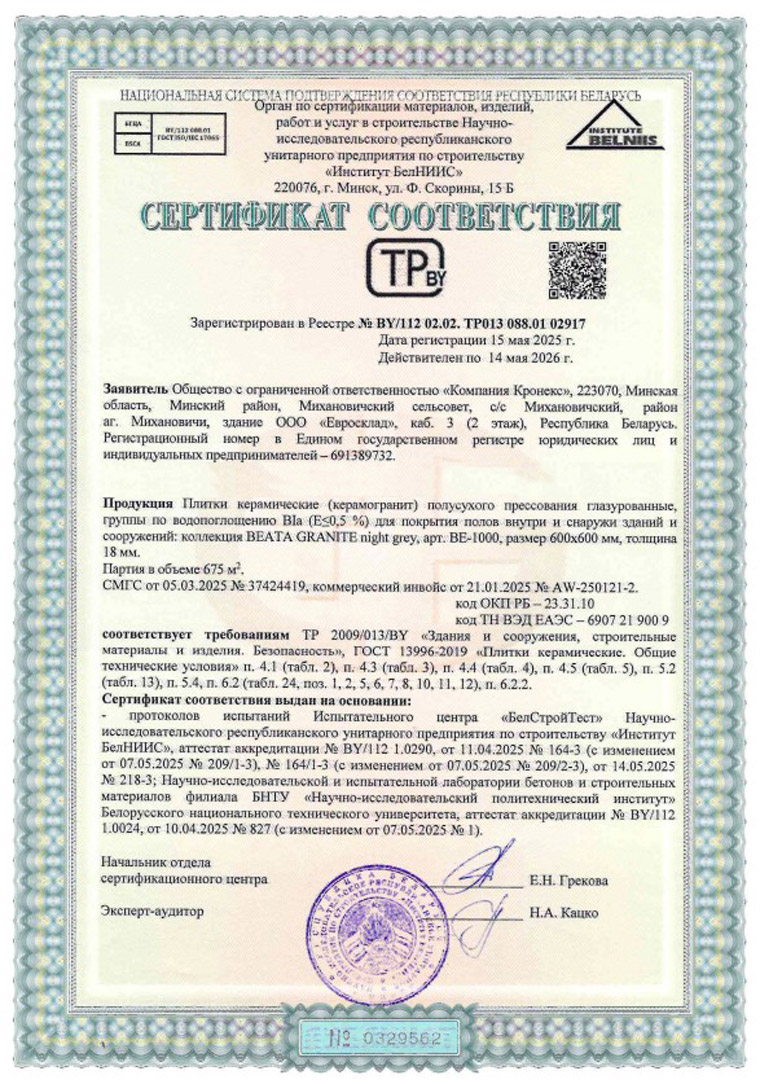 Плитка из керамогранита BEATA GRANITE, 600*600*18мм, night gray