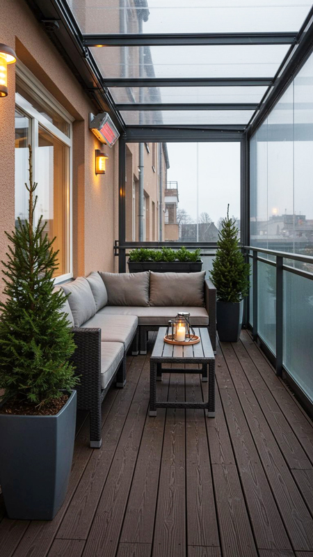 Терраса на крыше может стать идеальным пространством для уютных вечеров. Основное внимание стоит уделить созданию комфортной зоны отдыха с уличной мебелью, дополнив ее очагом или обогревателем.